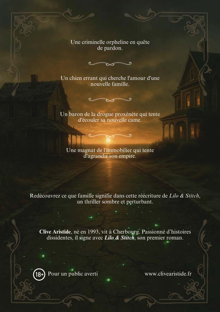 Dns ces sessions, je m’amuse et me surprends à apprécier écrire dans ce genre qu’est le gore, le dérangeant. Et ça tombe bien c’est le genre de Lilo et Stitch.