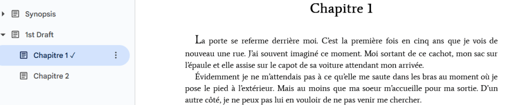 Une chose à la fois. D’abord l’histoire. Puis on passera à la mise en forme.